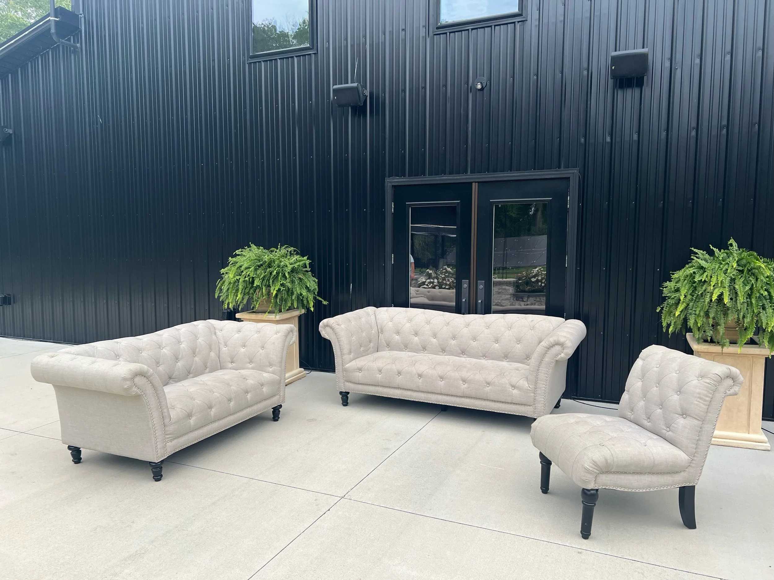 Add this charming furniture set or individual pieces to your special day. Can be utilized during cocktail hour or your reception.